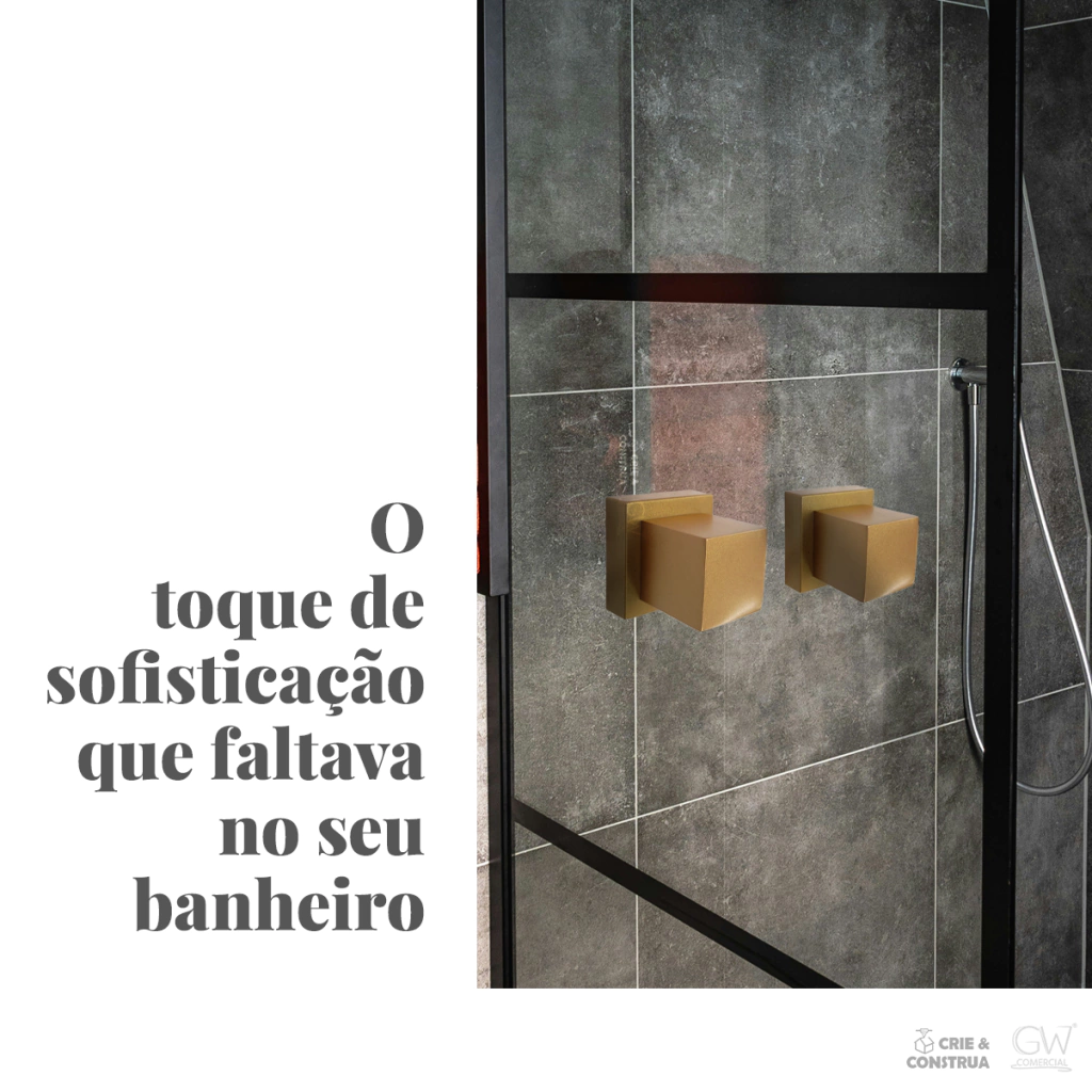 Com formato moderno e acabamento dourado fosco, esse modelo é compatível com registros padrão Deca e Docol.