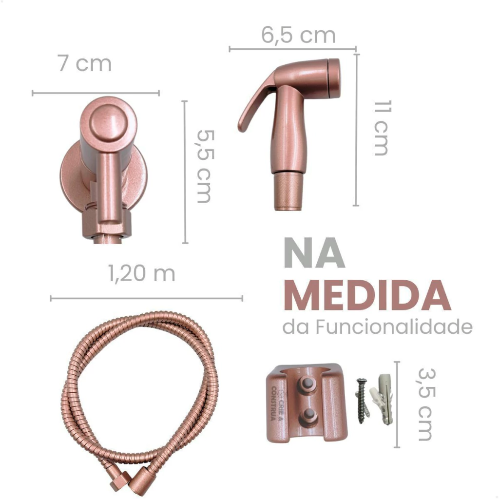 Ideal para quem busca elegância e funcionalidade, o Kit Acabamento de Descarga + Ducha Higiênica Rose Gold oferece um acabamento refinado, tornando seu banheiro mais moderno e sofisticado.