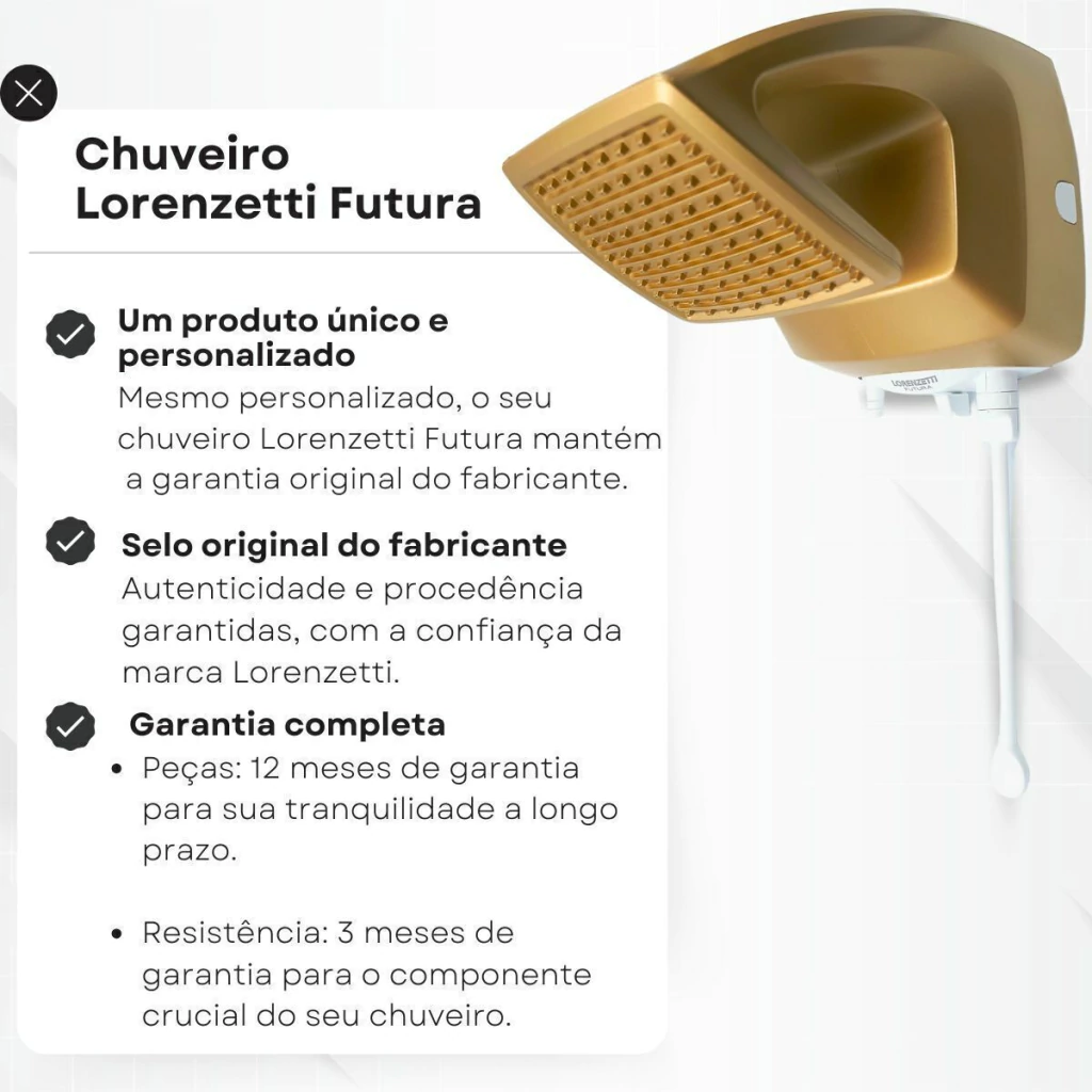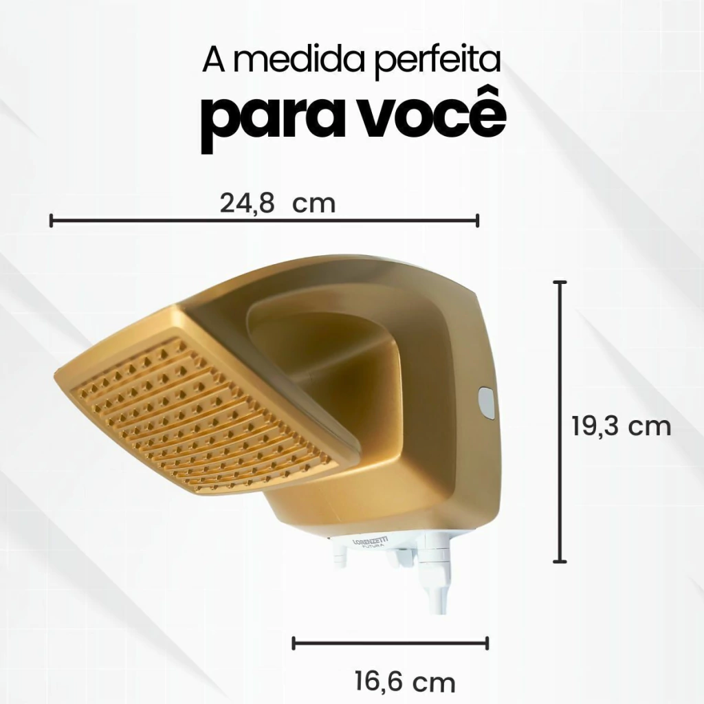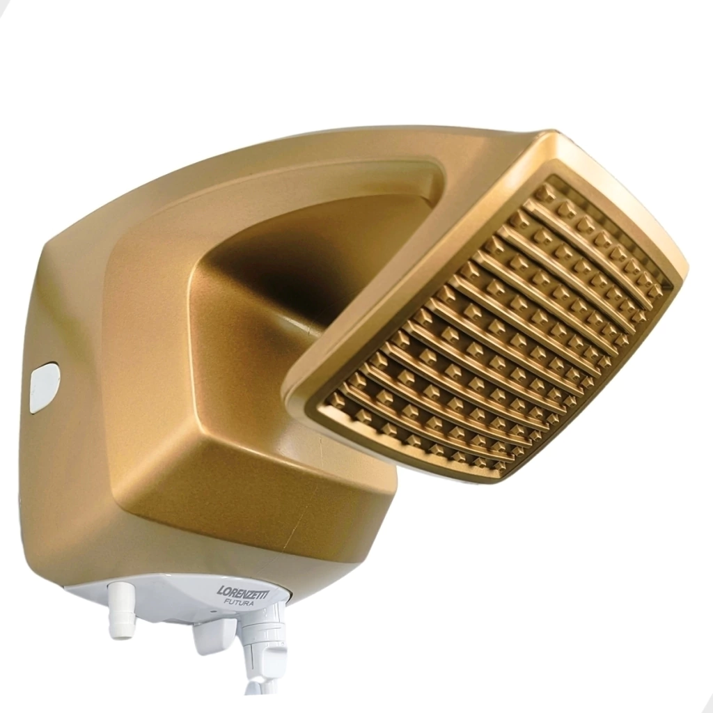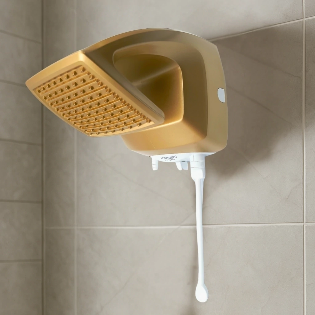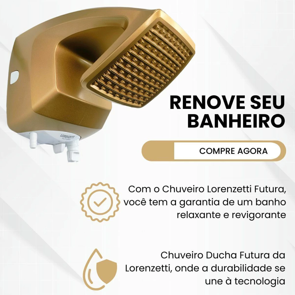 Transforme seu banho em um momento de puro conforto e sofisticação com o Chuveiro Lorenzetti Futura. Com design quadrado moderno e acabamento elegante em dourado e branco, ele é perfeito para quem busca estilo e qualidade no dia a dia.