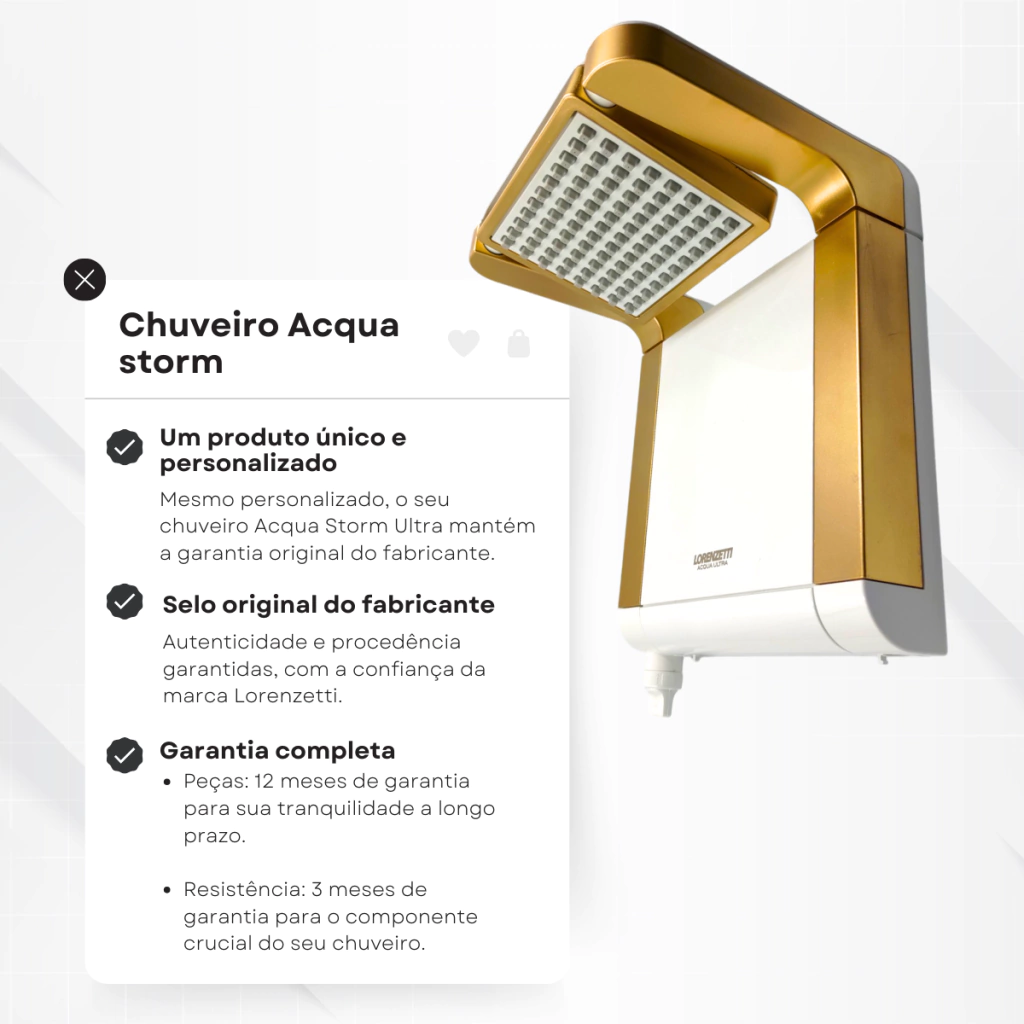 O Chuveiro Elétrico Ultra 7800W 220V Lorenzetti na cor Dourada é uma escolha de luxo para aqueles que desejam transformar seu banho diário em uma experiência de spa em casa. Com uma potência impressionante, um design sofisticado e a facilidade de uso, este chuveiro proporciona um banho confortável e elegante.