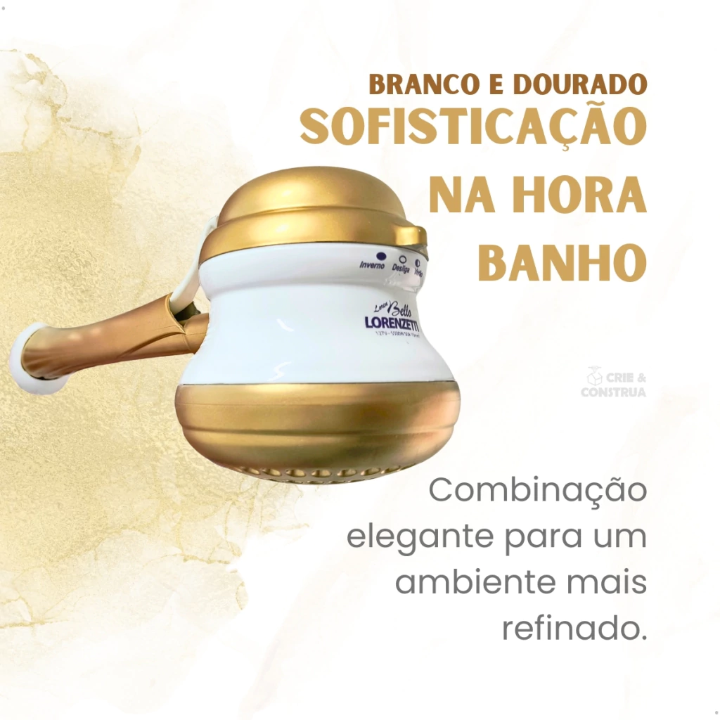 Chuveiro Elétrico Loren Bello 220V 5500W Branco com Detalhes Dourados