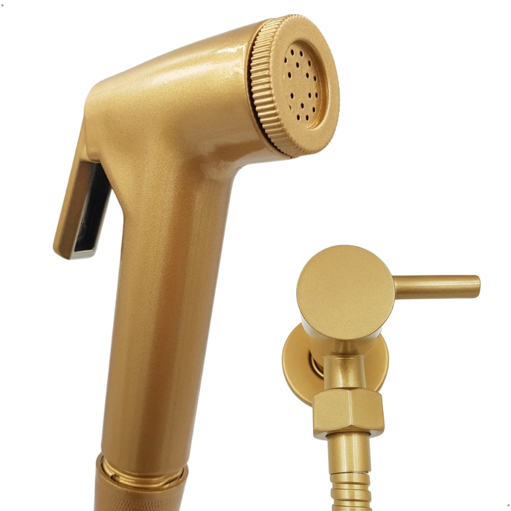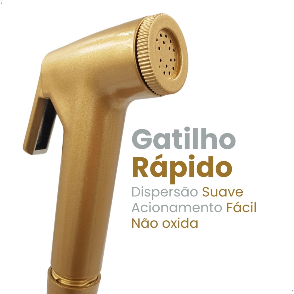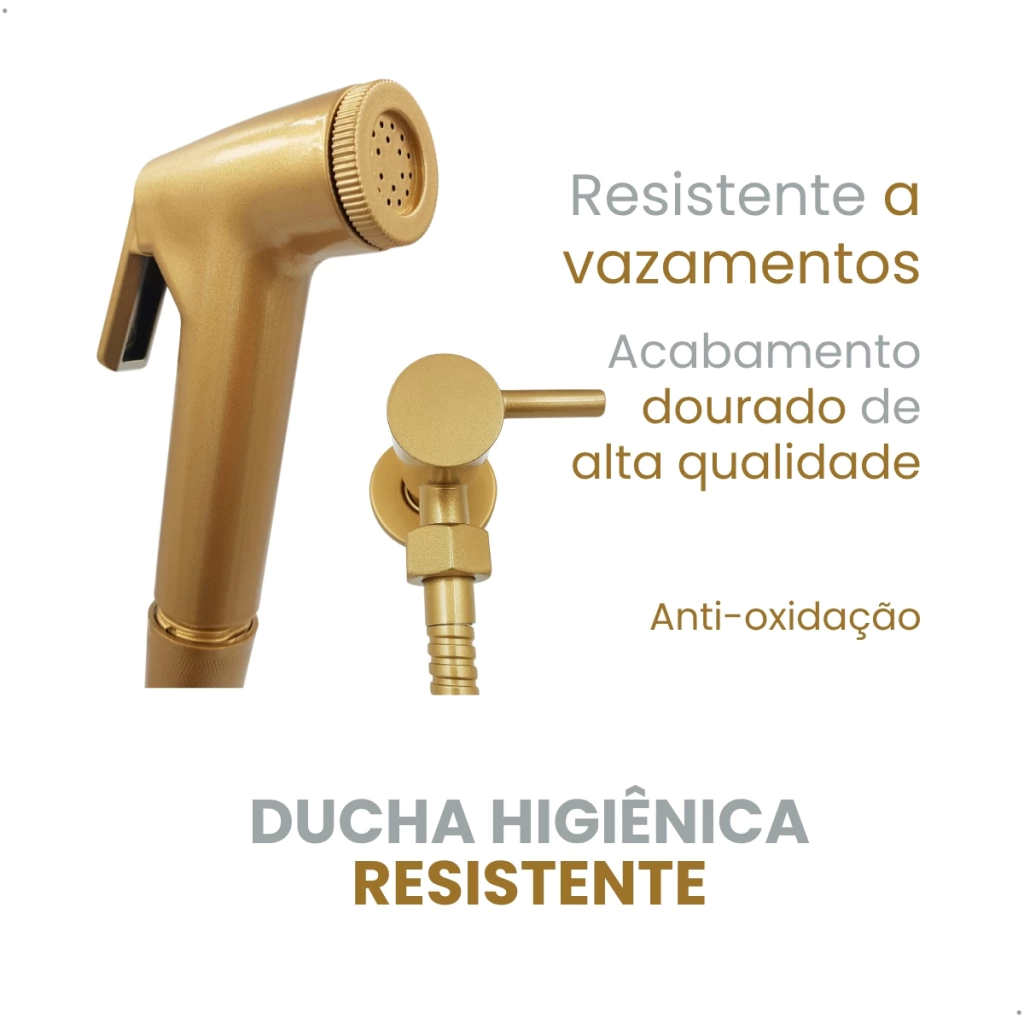 Ducha Higiênica Dourada com Registro 1/4 de Volta e Gatilho Rápido – Mangueira Flexível de Aço Inox 1,20m