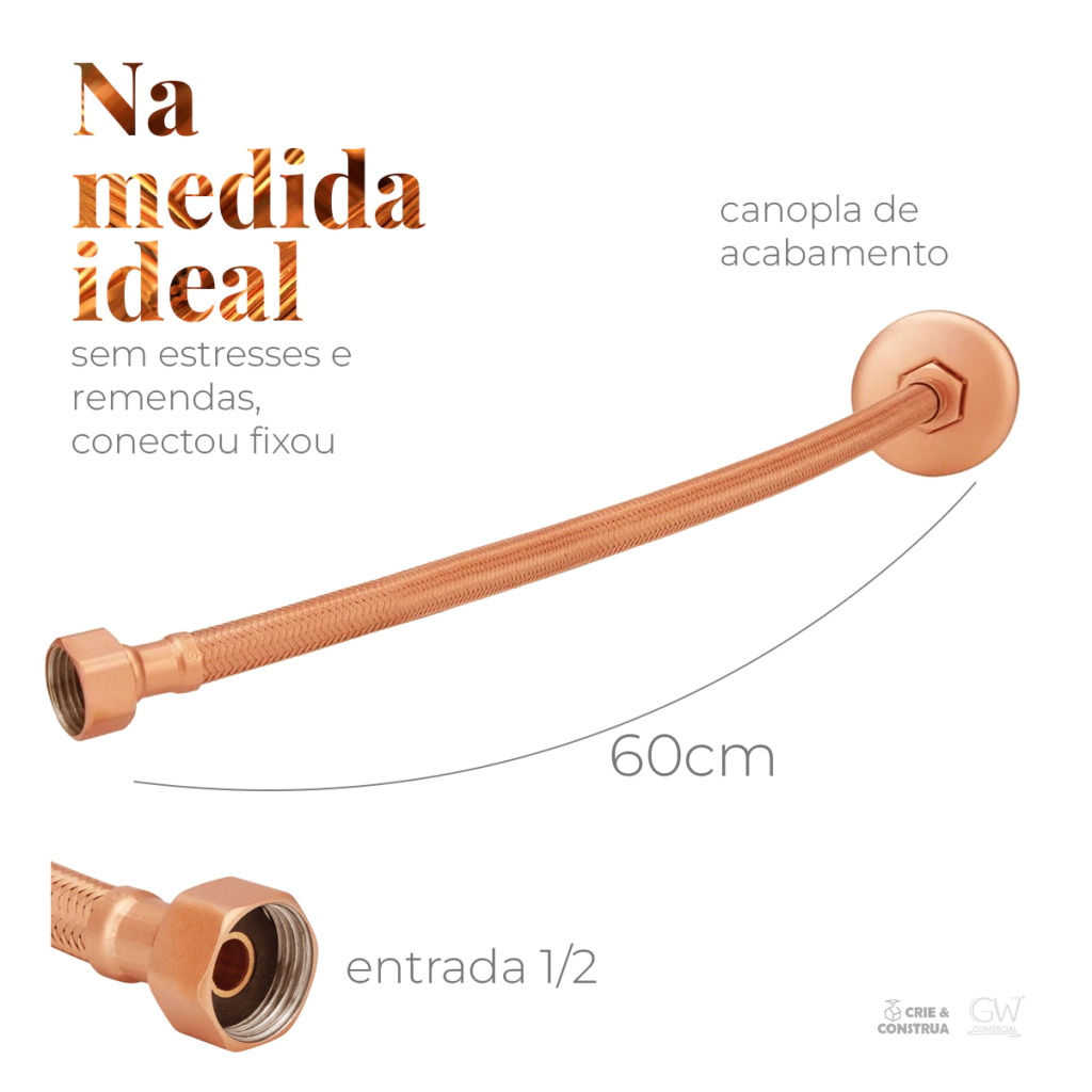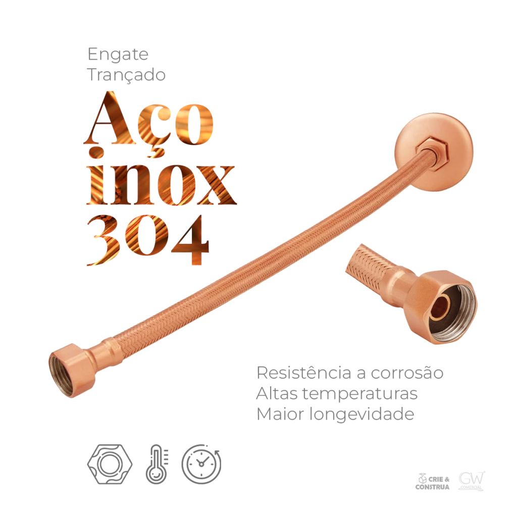 O Engate Flexível Trançado 60 cm Bronze Acetinado com Niple Preso une funcionalidade, durabilidade e sofisticação. Fabricado em aço inox com malha trançada, garante resistência à pressão da água e proteção contra oxidação. Seu acabamento bronze acetinado proporciona um visual elegante e diferenciado, ideal para composições modernas e refinadas. O niple preso assegura uma vedação eficiente, evitando vazamentos e facilitando a instalação em lavatórios, pias e vasos sanitários.