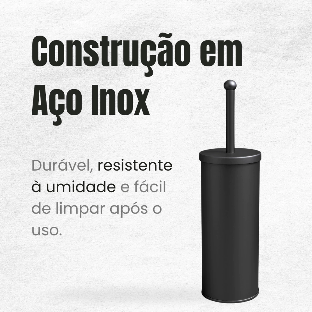Leve mais elegância e praticidade ao seu banheiro com esta escova sanitária preta fosco, fabricada em aço inox de alta qualidade, com cerdas de nylon resistentes e estrutura funcional. Ideal para manter a higiene do vaso sanitário com eficiência, sem abrir mão do estilo na decoração.