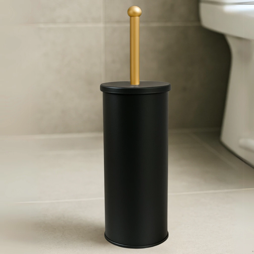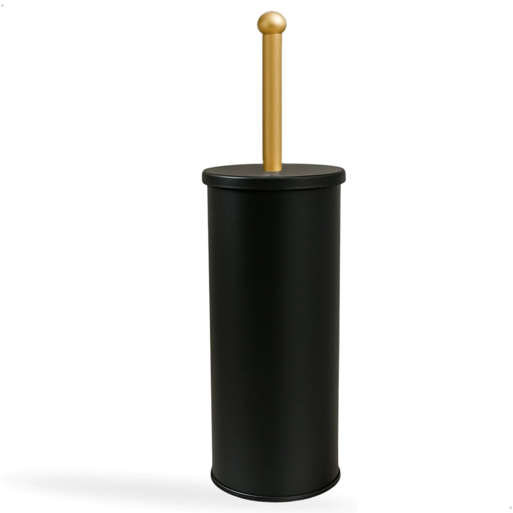 Escova Sanitária de Banheiro Preta E Dourada– Aço Inox com Design Sofisticado