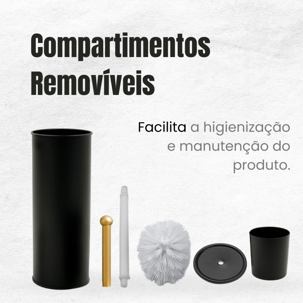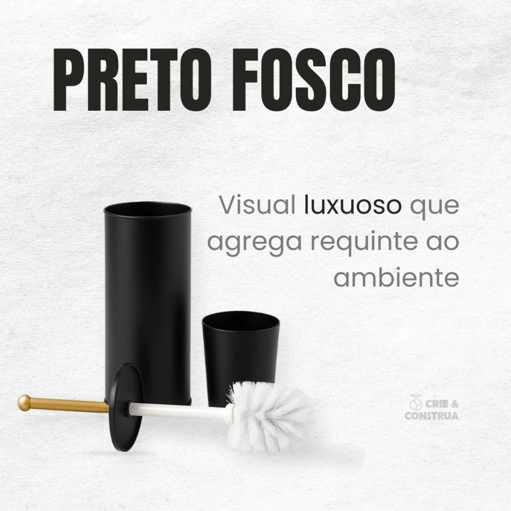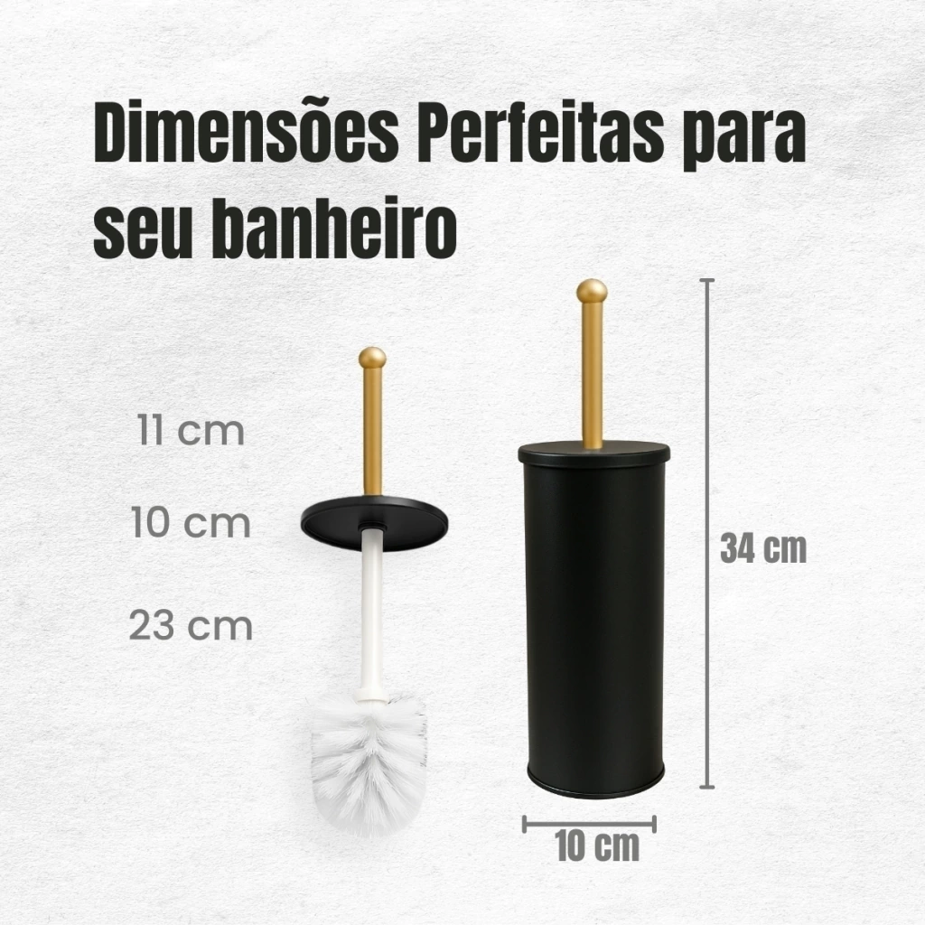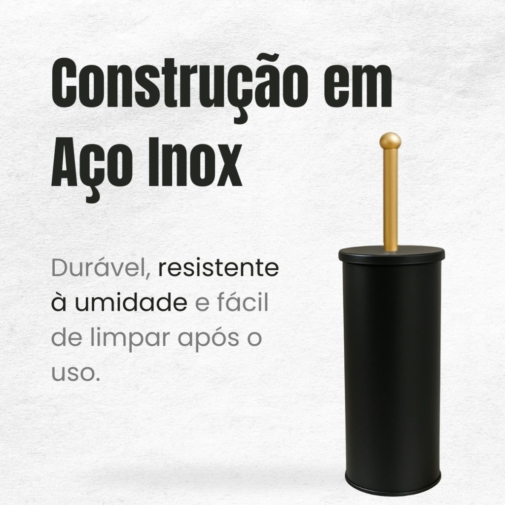 Leve mais elegância e praticidade ao seu banheiro com esta escova sanitária preta e dourada, fabricada em aço inox de alta qualidade, com cerdas de nylon resistentes e estrutura funcional. Ideal para manter a higiene do vaso sanitário com eficiência, sem abrir mão do estilo na decoração.