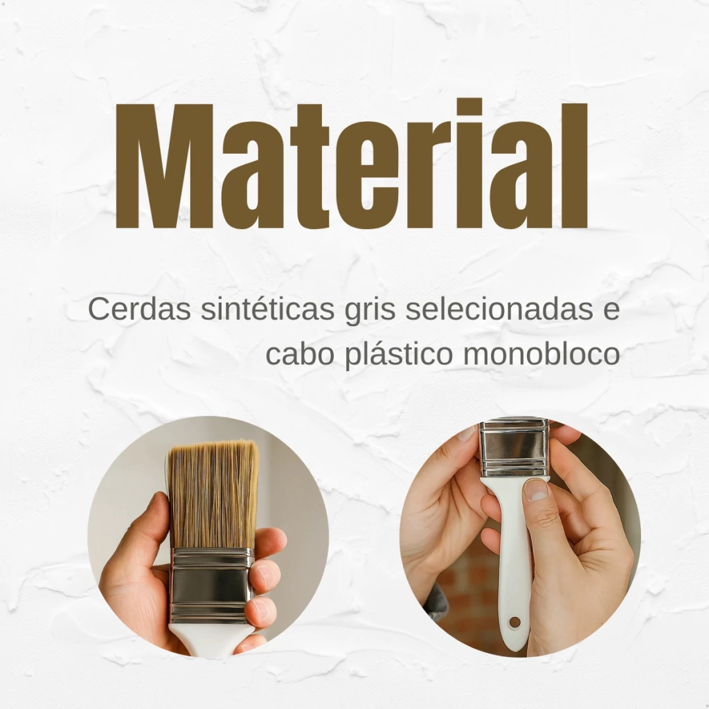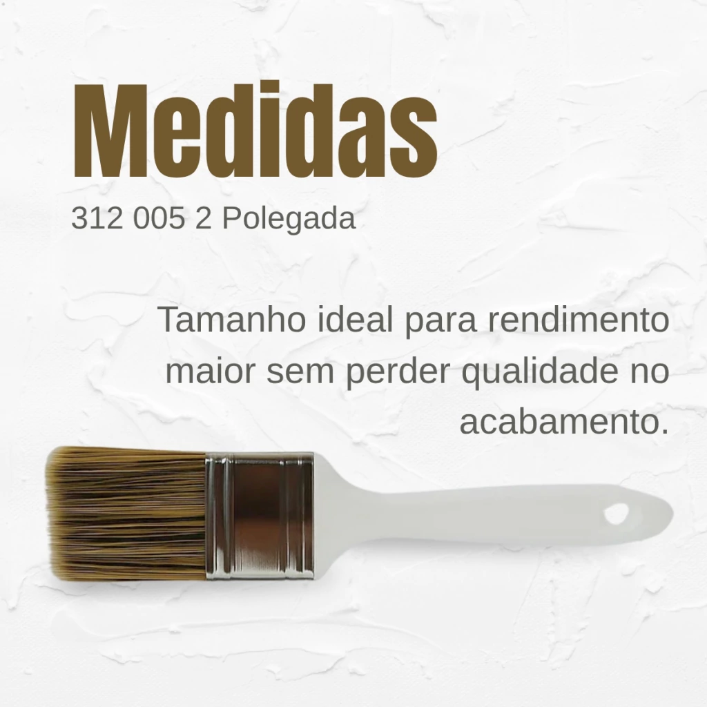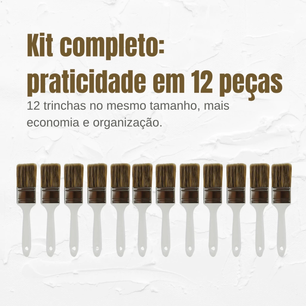 O Kit com 12 Trinchas 312 nº 005 de 2 polegadas (50,8mm) foi desenvolvido para oferecer eficiência e qualidade em pinturas profissionais e residenciais. Produzidas com cerdas sintéticas gris selecionadas, proporcionam excelente transferência de tinta e cobertura uniforme, sendo indicadas para todos os tipos de tintas. Seu cabo plástico ergonômico garante conforto no manuseio, enquanto a fabricação em sistema monobloco assegura maior durabilidade e resistência.