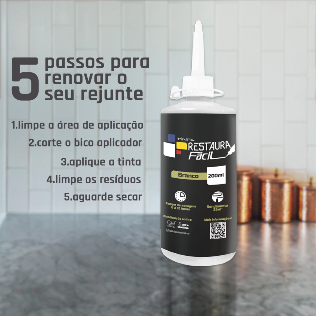 Renove o rejunte de forma prática e rápida com o Kit de Tinta Para Rejunte Preto. Ideal para trocar ou revitalizar a cor do rejuntamento, oferece um acabamento uniforme e duradouro. Com fácil aplicação, alta aderência e rendimento de até 25m², é perfeito para áreas internas e externas, incluindo fachadas, piscinas e saunas.