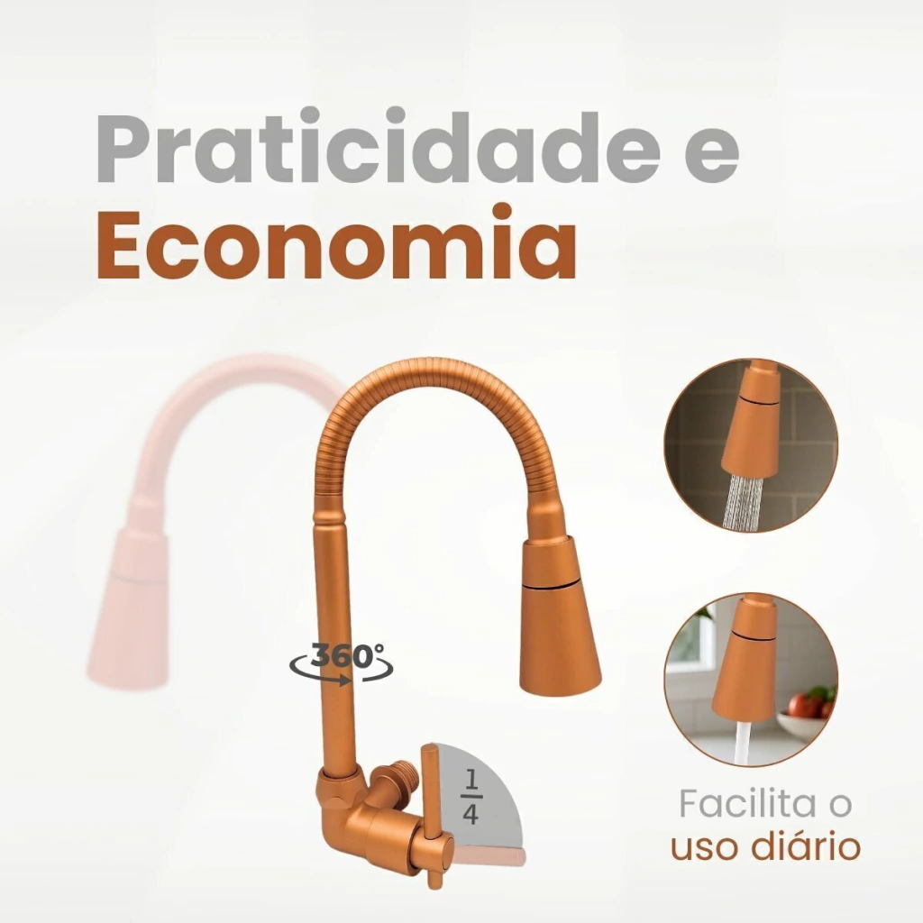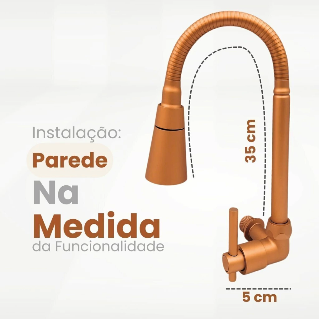 Adicione sofisticação e praticidade à sua cozinha com a Torneira Gourmet de Parede na cor bronze.