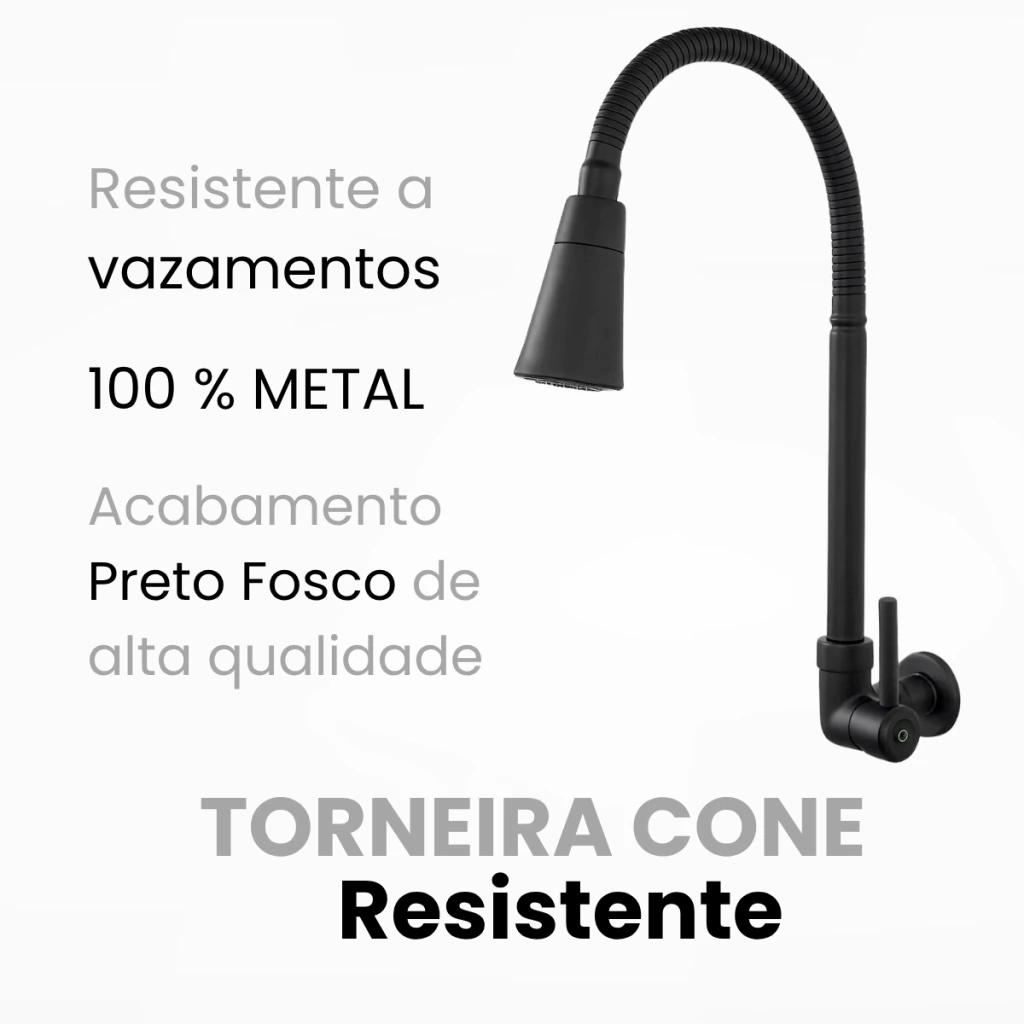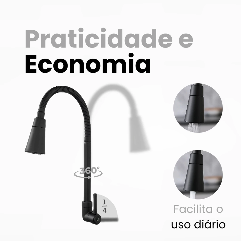 Transforme sua cozinha com a Torneira Gourmet Flexível Preto Fosco! Fabricada em metal resistente, conta com tubo flexível 360° em aço inox, proporcionando maior mobilidade e praticidade no uso diário.