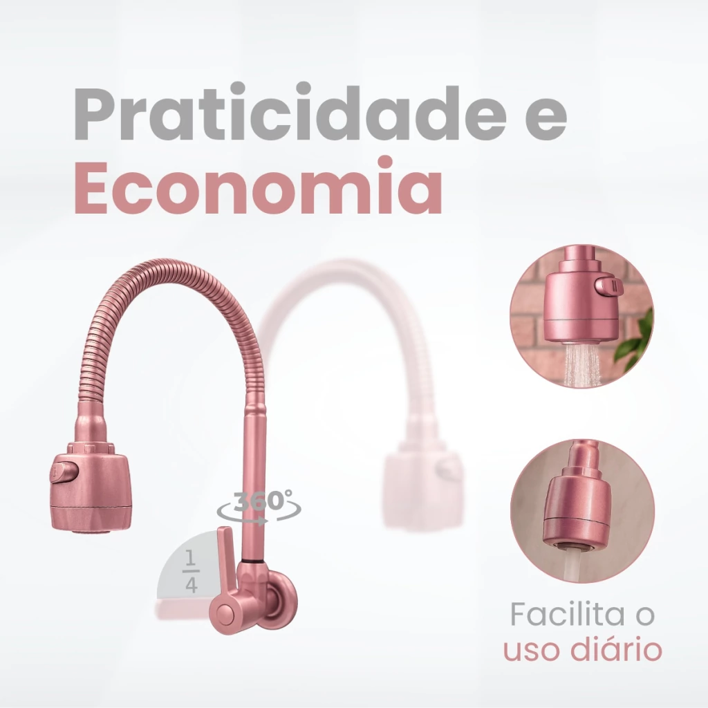 Torneira Gourmet Flexível Parede Rose Gold 2 Jatos Metal