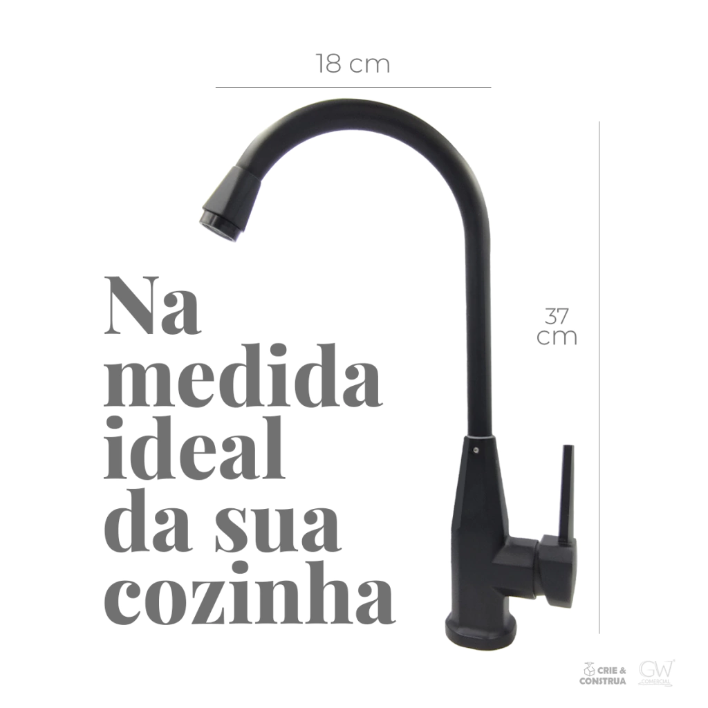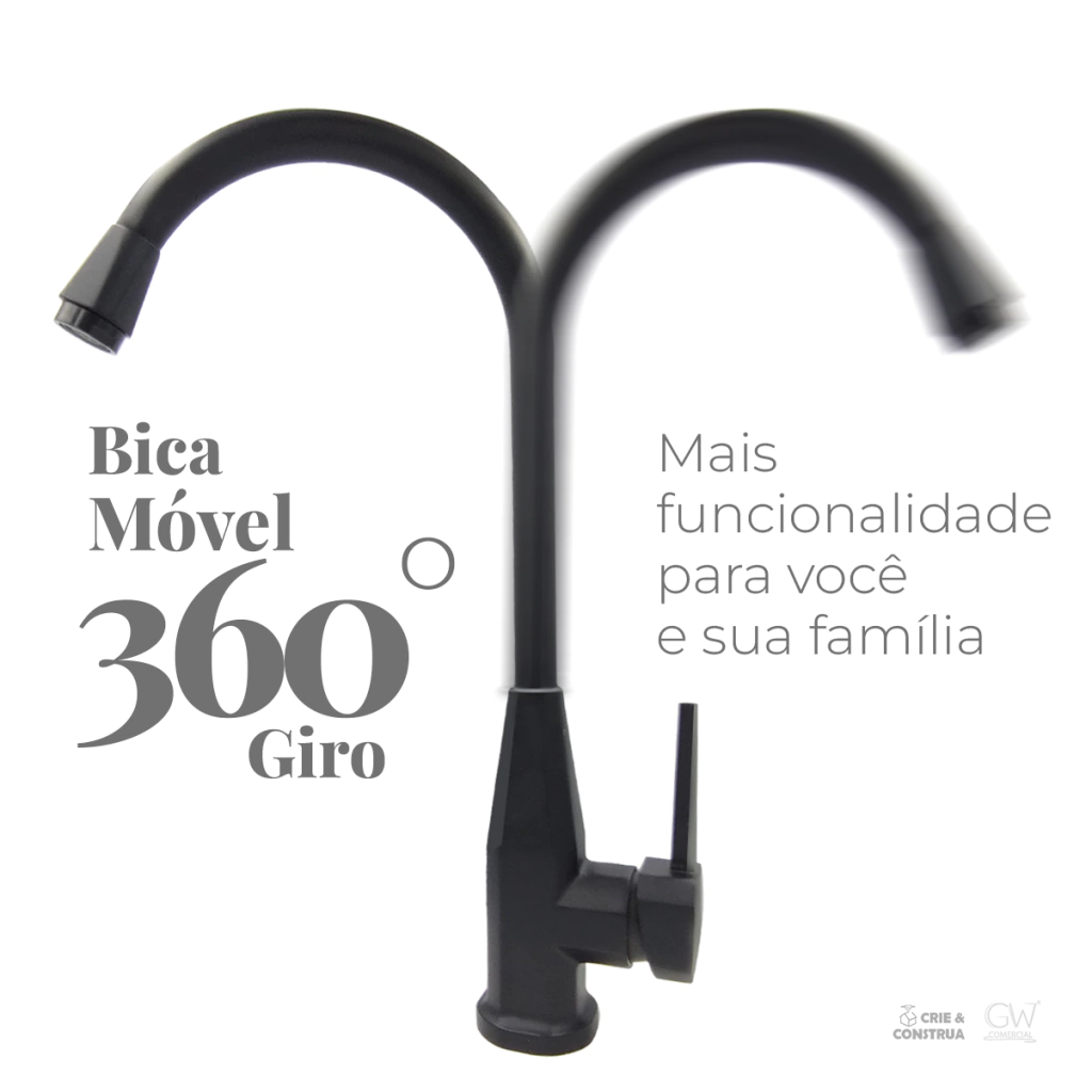 Torneira Monocomando Black Matte J Bica Móvel Crie & Construa