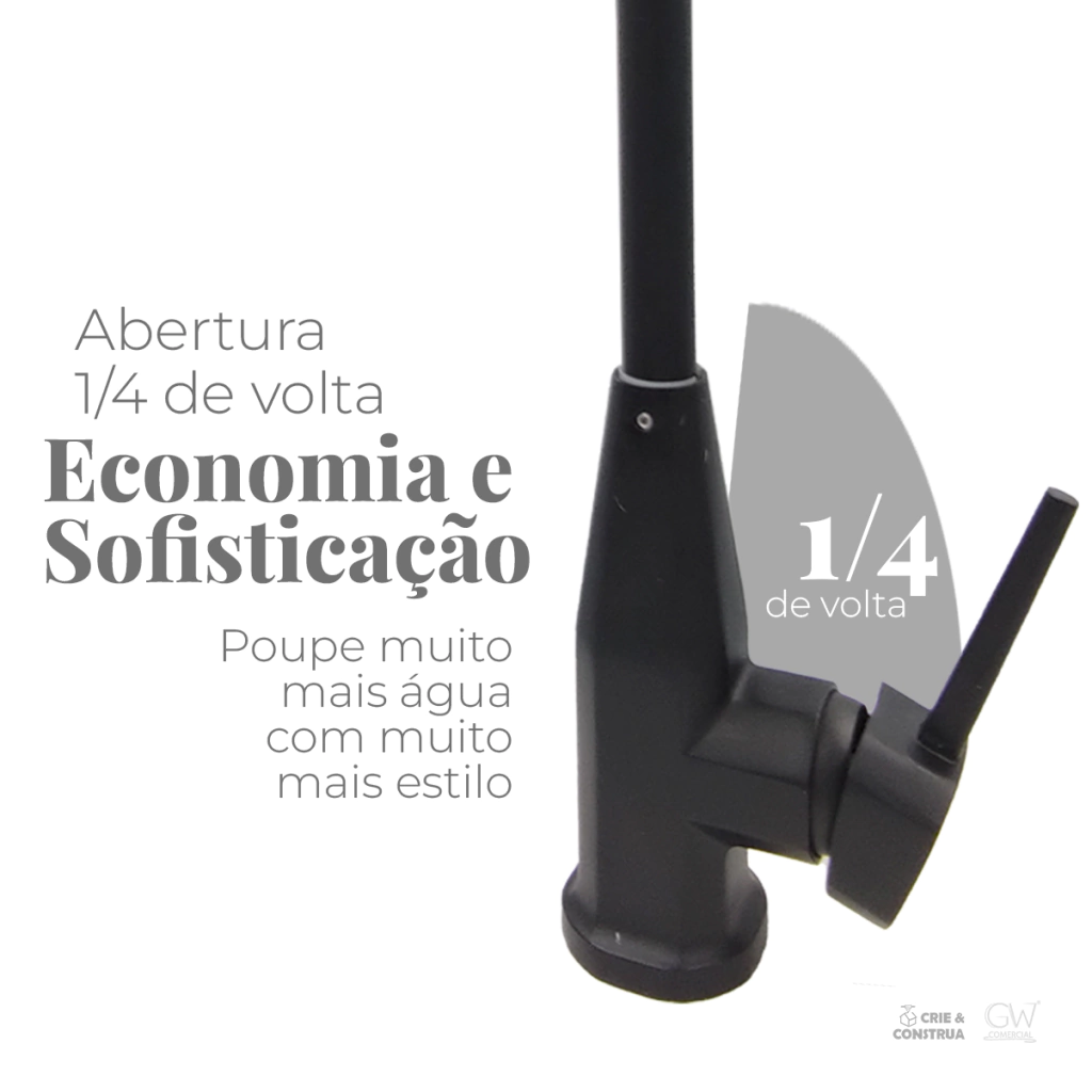 Design: Sofisticado e moderno, ideal para cozinhas contemporâneasAcionamento: Alavanca 1/4 de volta para controle preciso do fluxo de água
