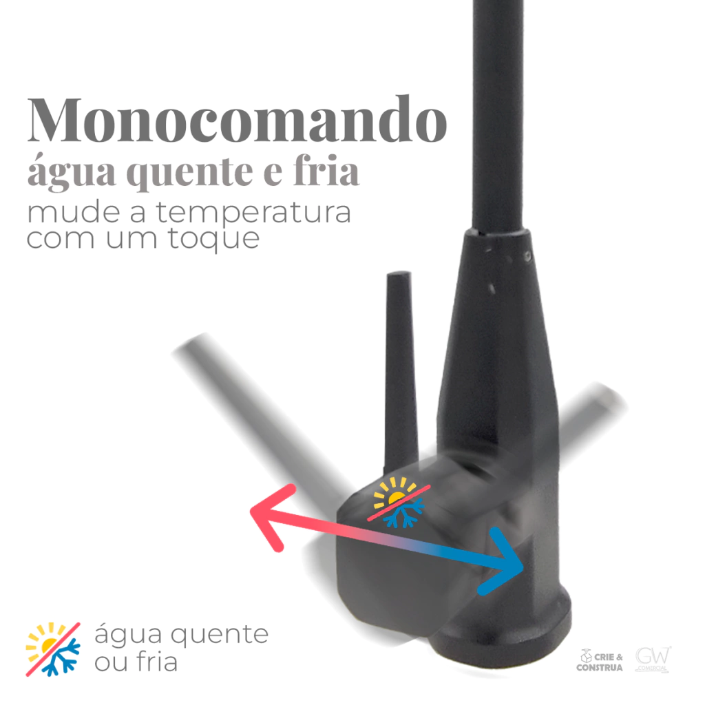 Controle de Temperatura: Se for uma torneira monocomando, você controla a temperatura da água quente e fria com apenas uma alavanca. Caso seja duplo comando, há duas alavancas para ajuste separado.