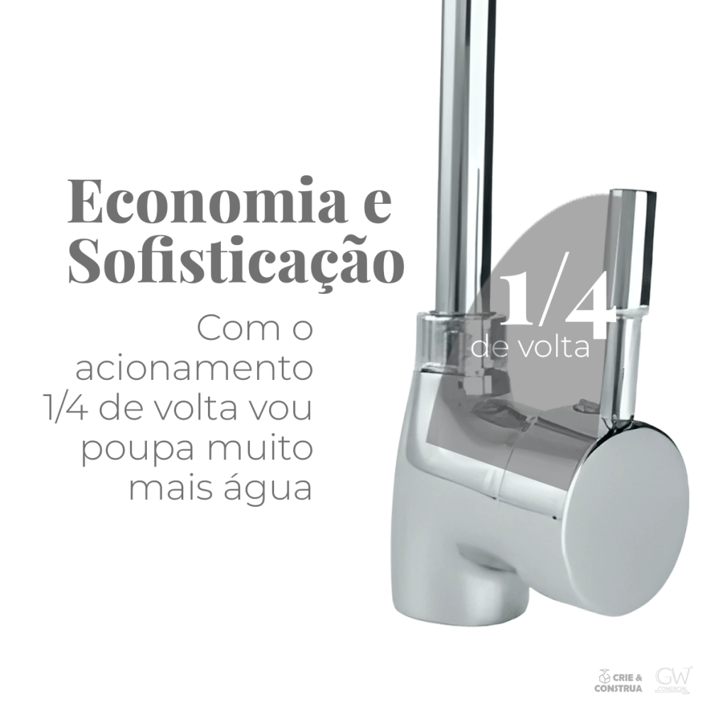 Acionamento: Alavanca 1/4 de volta para controle preciso do fluxo de água