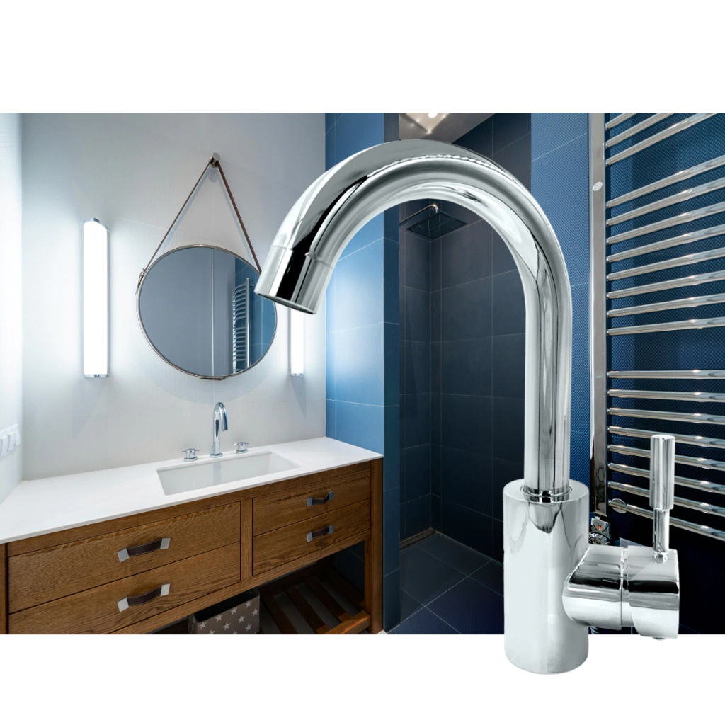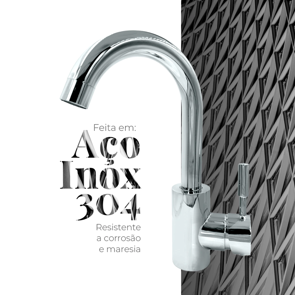 Design Sofisticado: A torneira gourmet possui um formato de bica em arco, que adiciona charme e beleza ao ambiente. Seu acabamento em aço inox é durável e altamente resistente.