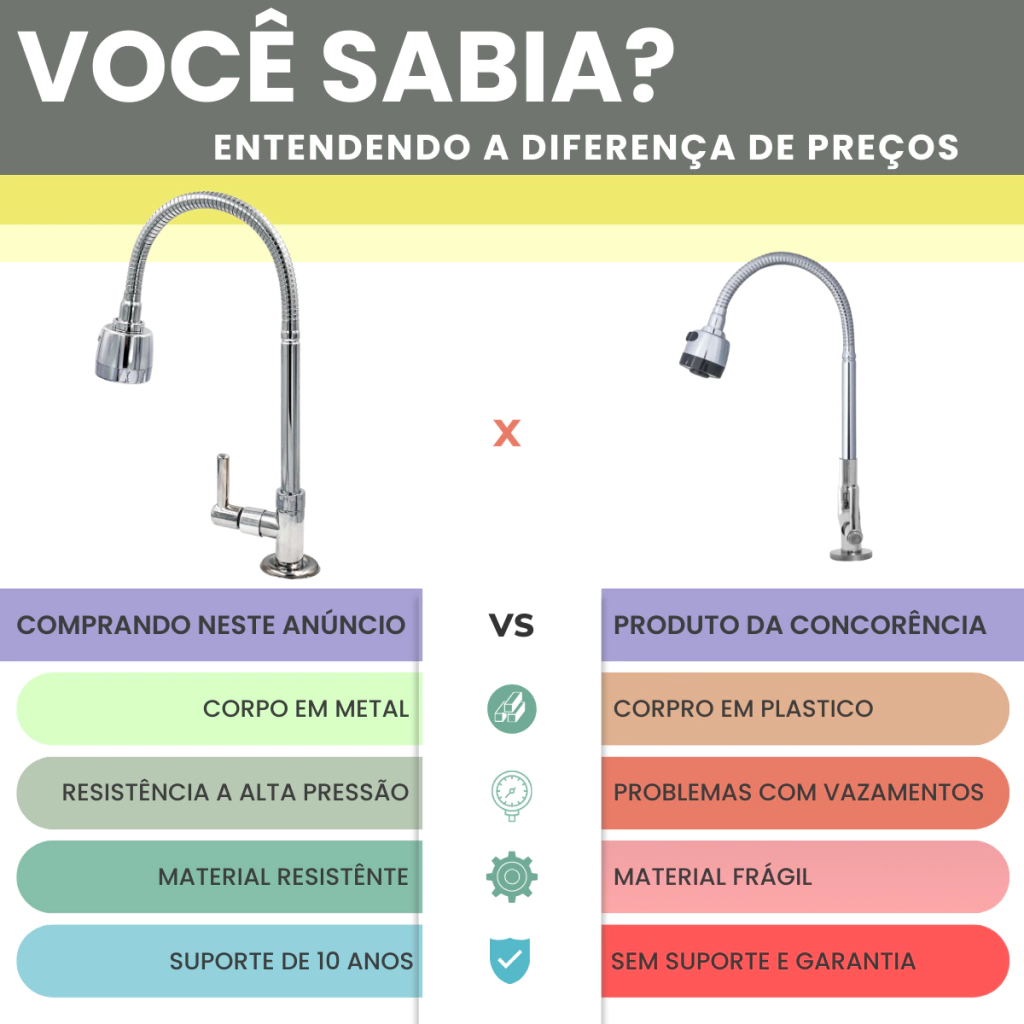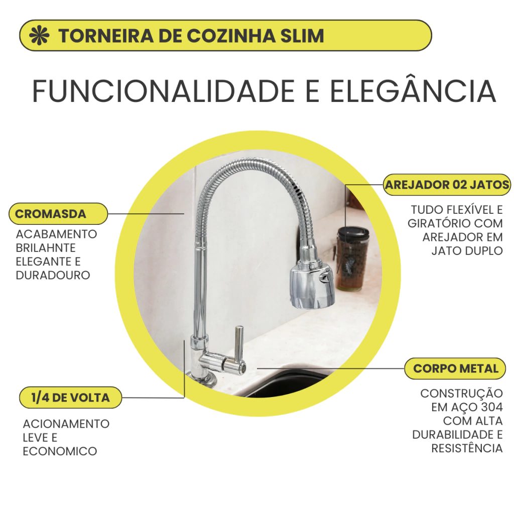 Jato aerado: economia de água e conforto ao lavar as mãosJato ducha: praticidade para enxaguar louças ou objetos maioresVazão de água: